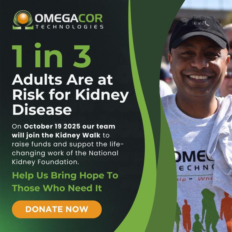 This October 19th our OmegaCor team will walk to raise awareness, inspire hope, and support the lifesaving work of the National Kidney Foundation.