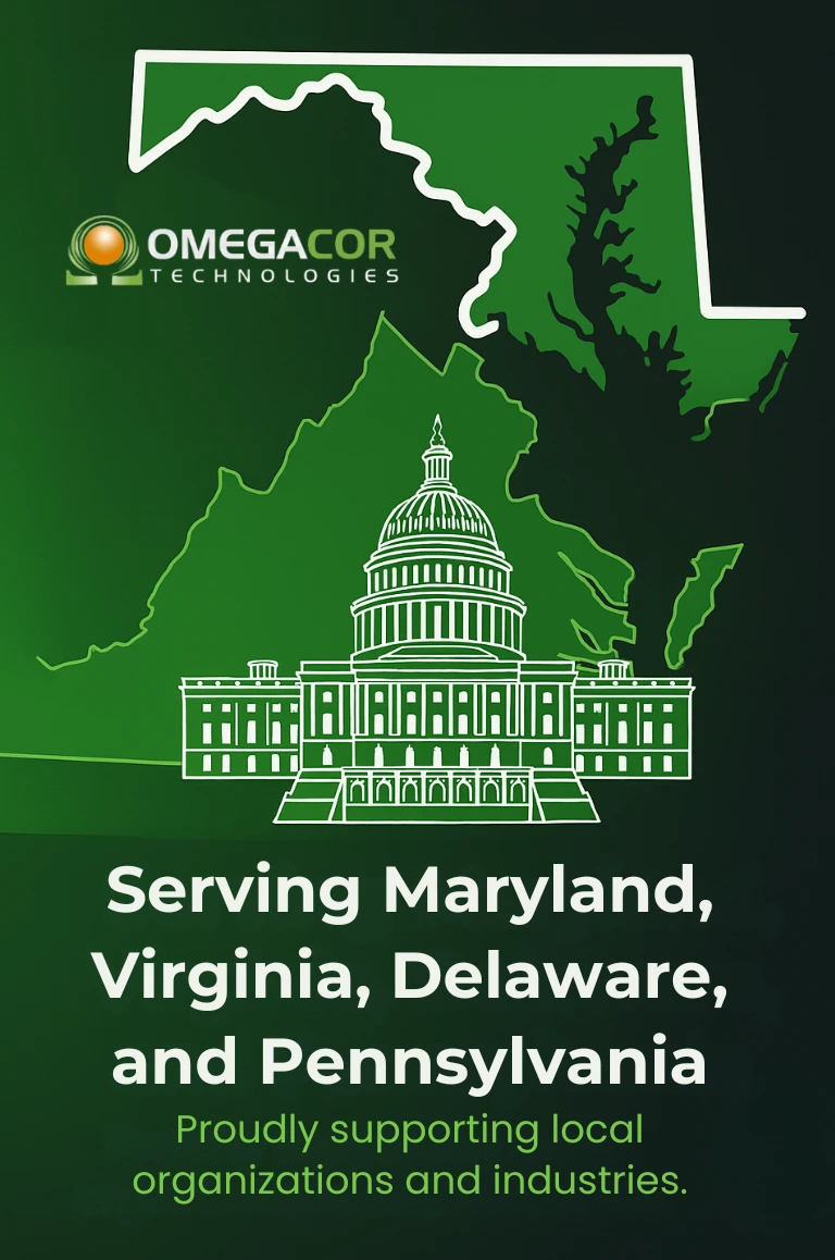 At OmegaCor Technologies, we provide mission-aligned, frontline-aware IT support to organizations across Northern Virginia, Delaware, Pennsylvania, Washington, D.C. and surrounding areas. Based in Millersville, Maryland, our team brings proactive, customized IT solutions that keep your operations running smoothly, whether you are in the field, in the office, or serving your community.